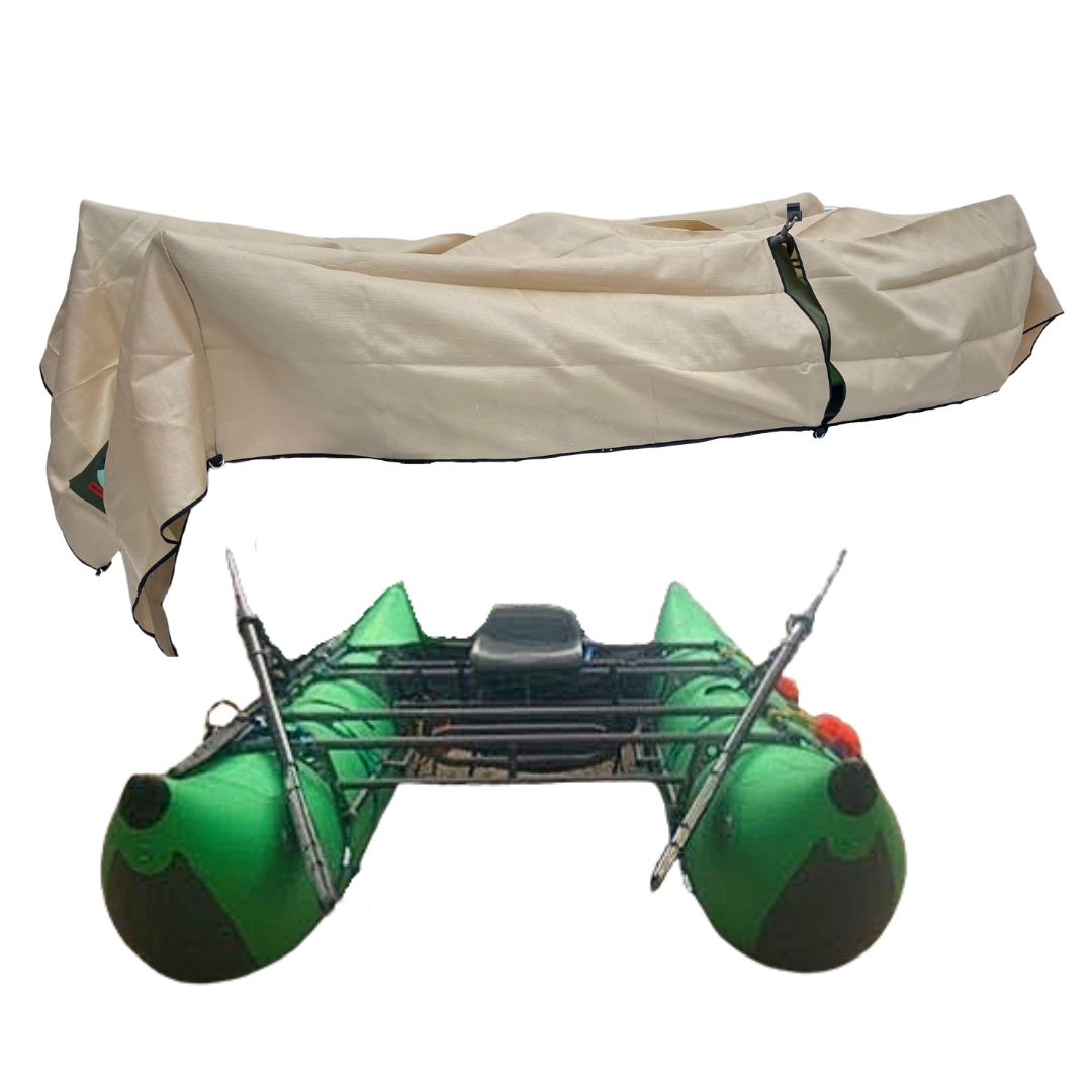 Large Cataraft Covers will fit most catarafts 16+ feet. Measures 165" wide x 258" long. (measure across your highest points to ensure proper fit).